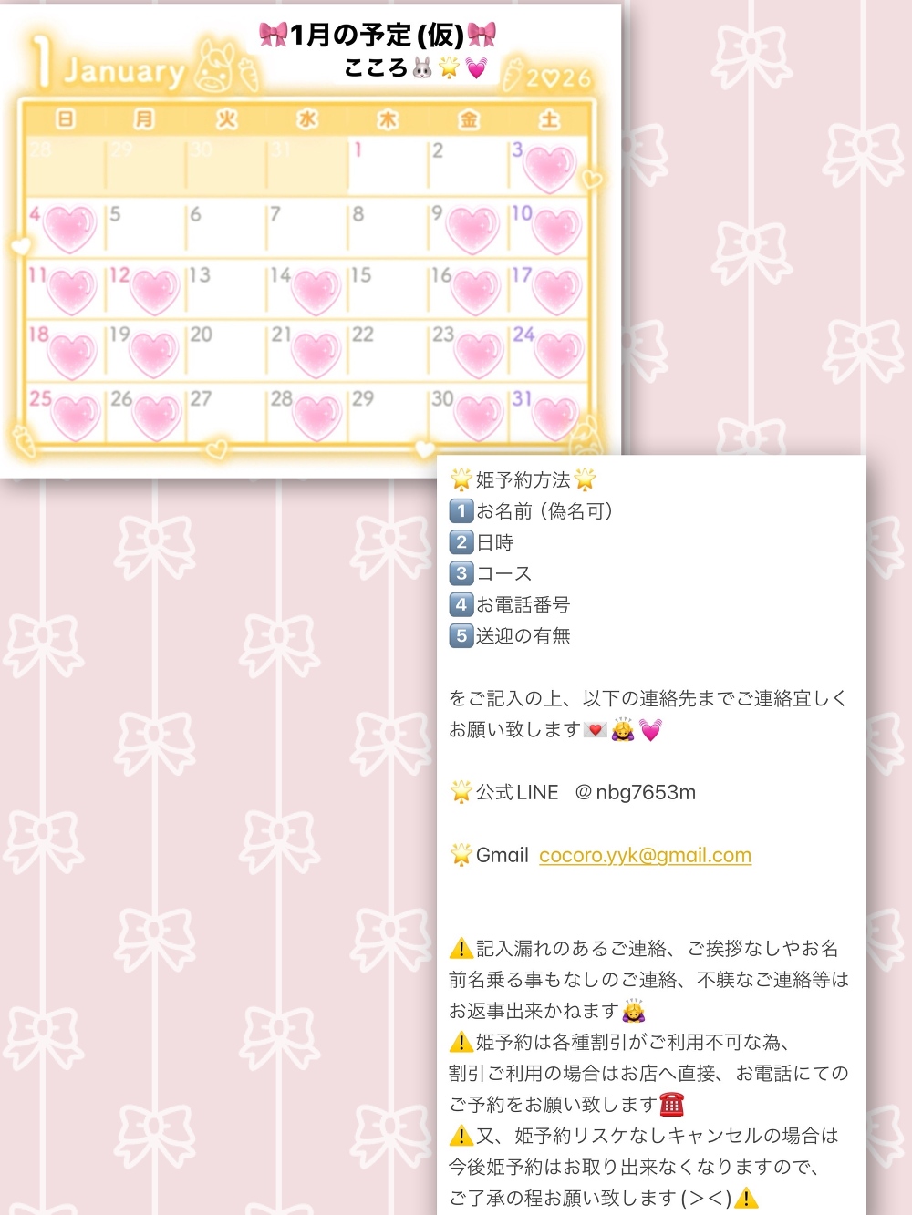 今月のスケジュール(仮)と姫予約方法を画像3枚目に添付しておきます📝💞